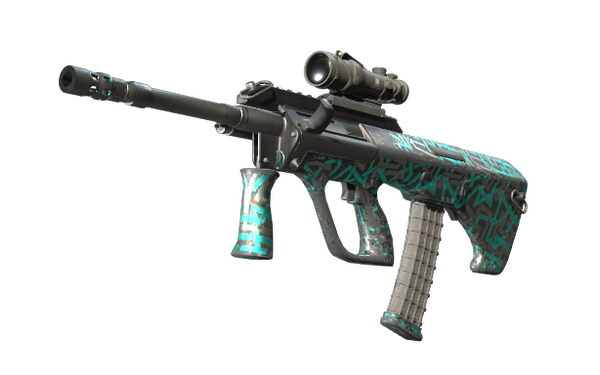 Powerful and accurate, the AUG scoped assault rifle compensates for its long reload times with low spread and a high rate of fire.