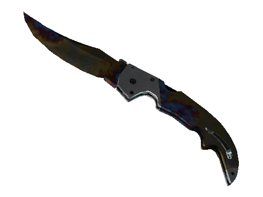 A modern homage to a falchion sword, this clip point blade has a curved edge.