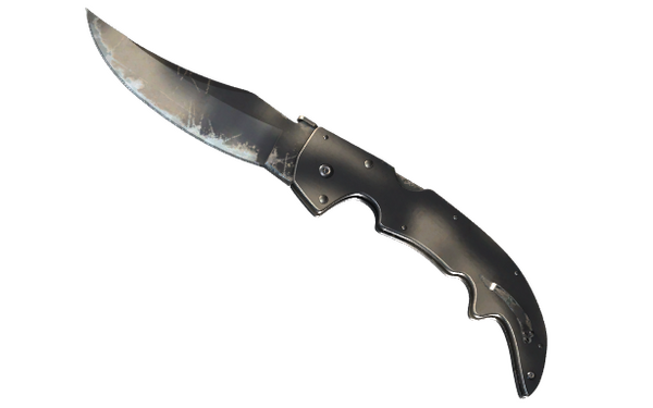 A modern homage to a falchion sword, this clip point blade has a curved edge.